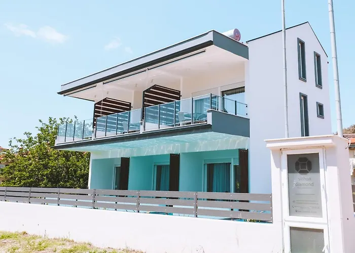 Nikiti şehir merkezine 10 dakikalık yürüme mesafesinde yer alan Sithon Diamond Suites, tesisin yakınında otopark sunmaktadır. Bu 37 m^2lik daire Nikiti Limanı'a doğrudan erişim sağlamakta ve 1 yatak odasından oluşmaktadır.